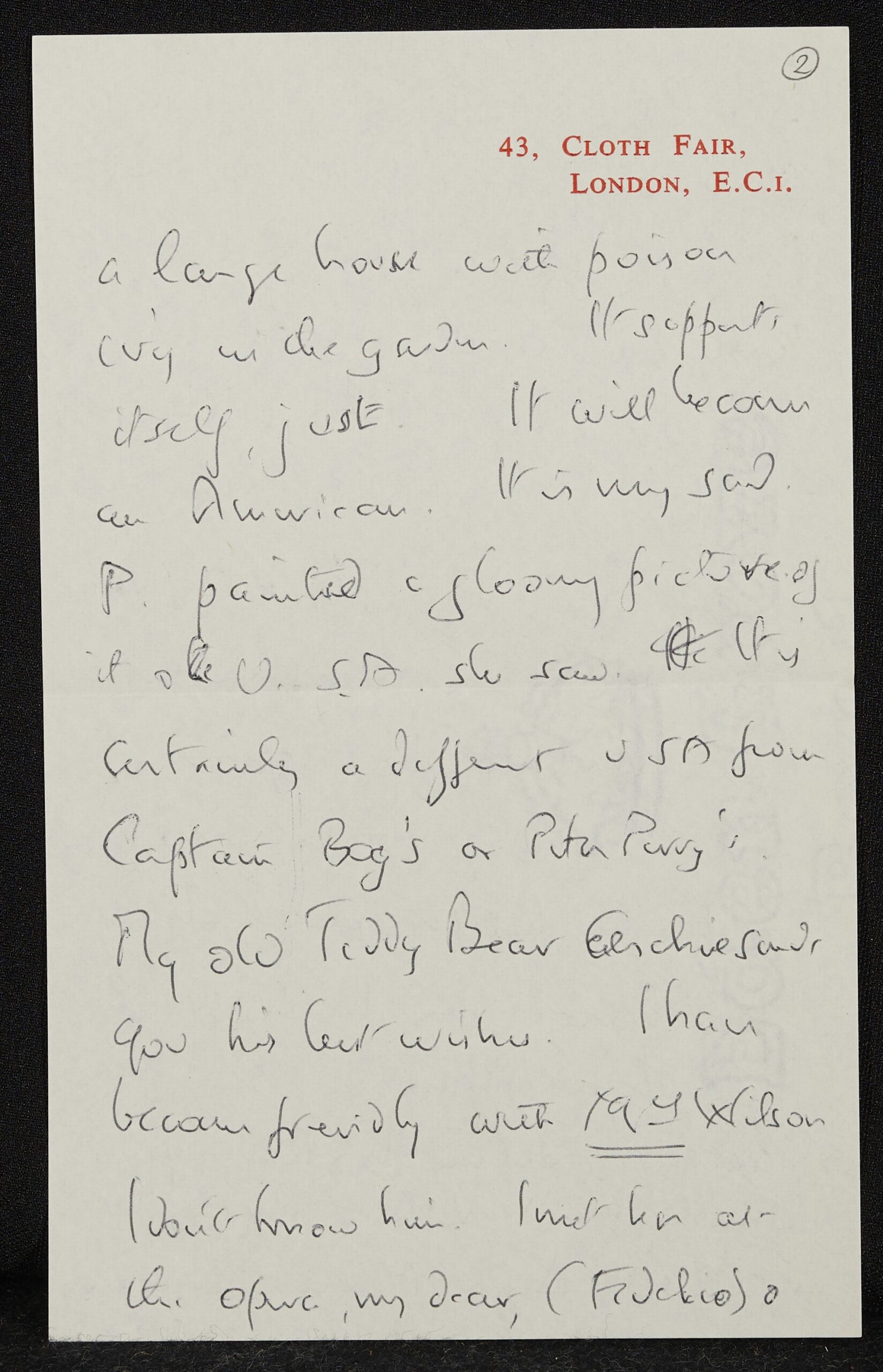Betjeman’s fondness for Perry is evident in sentences like: “Your handwriting hasn’t changed, you dear old thing”; and “My old Teddy Bear Archie sends you his best wishes”.