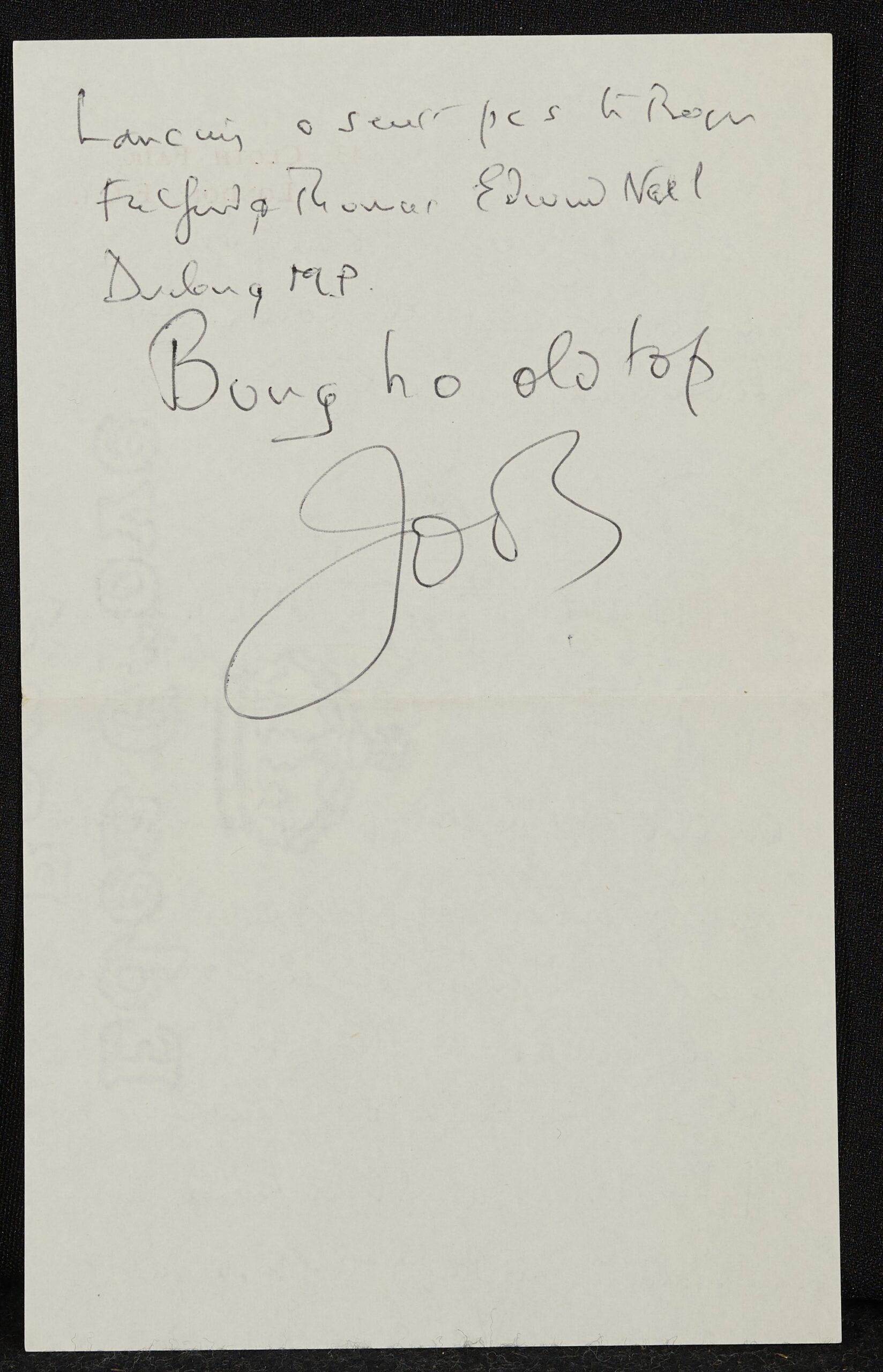 Some two decades after he left Magdalen, Betjeman was made a member of the Senior Common Room (SCR) in 1947, a privilege usually reserved for fellows of the college. Among the Magdalen fellows Betjeman got to know was historian Kenneth Bruce McFarlane (known as ‘Bruce’), the recipient of this letter dated 31 January 1953, featuring a particularly exuberant example of Betjeman’s signature.
