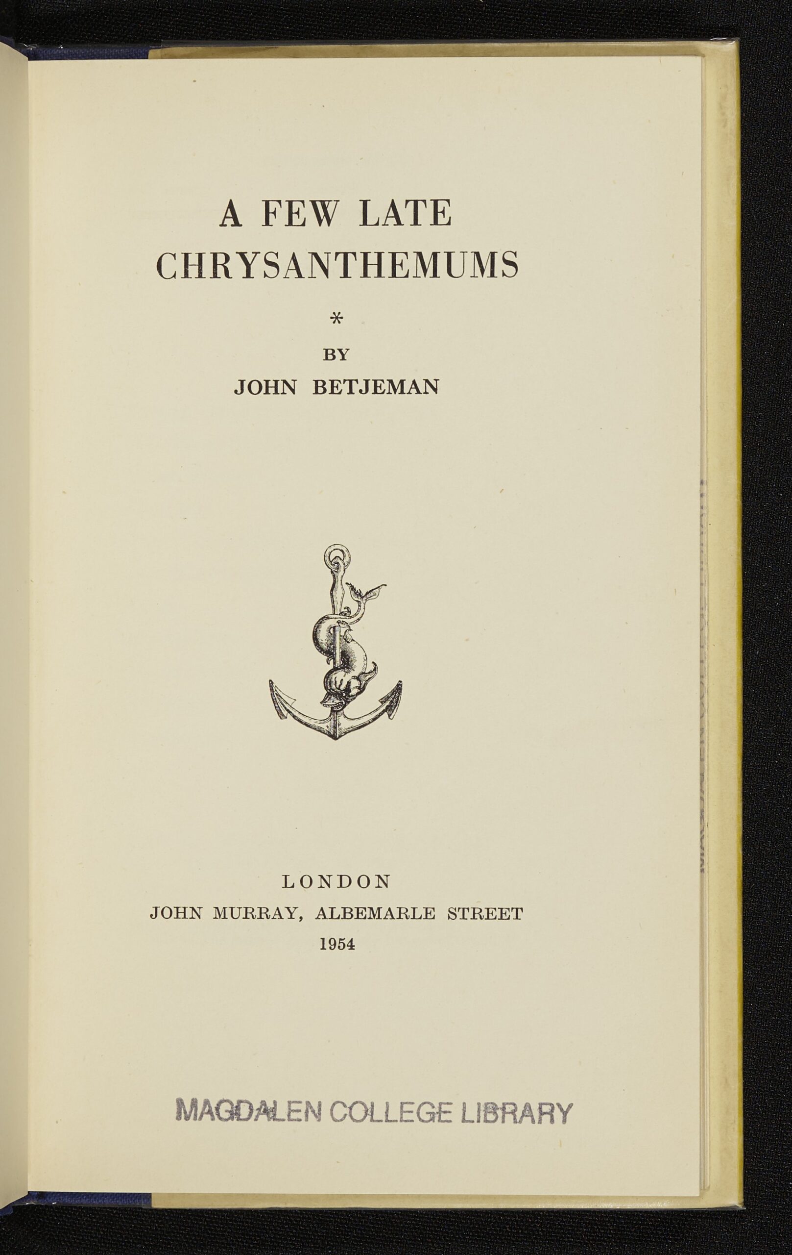 Twenty-six years after Betjeman left Magdalen, he instructed his publisher (the celebrated John Murray, whose ancestor had worked with Jane Austen) to send a first edition of this poetry collection to the College Library, free of charge.